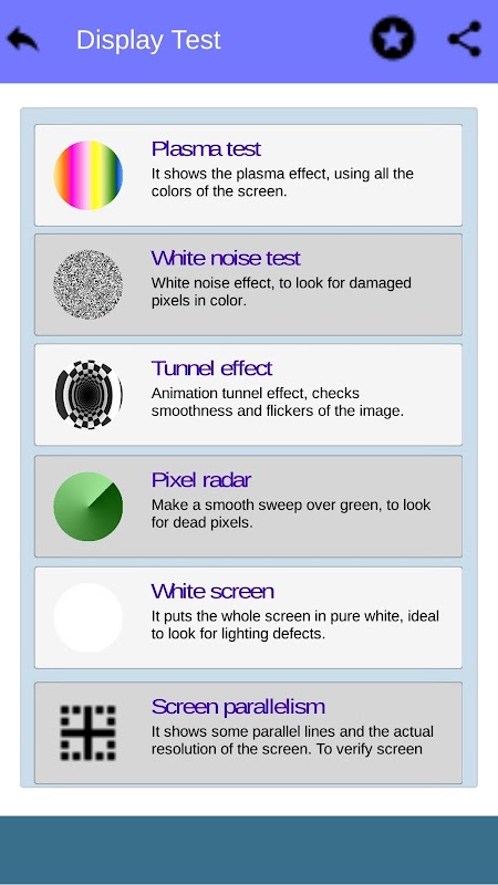 这个简单的免费应用程序是一个屏幕测试仪,包含多个实用程序,可用于检查您的移动设备或平板电脑的屏幕状态和质量。