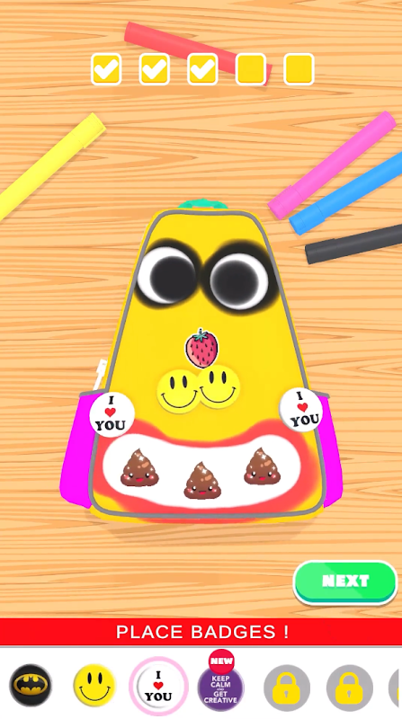 Use cleaning sponge, painting cans, stickers, badges and ears to customize your perfect backpack!