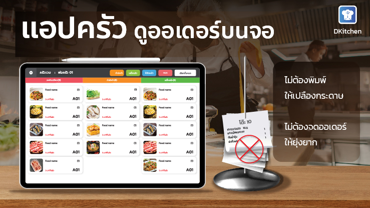 使用 Deltafood 餐厅管理系统的餐厅厨房系统 厨房工作人员可以在平板电脑或智能手机屏幕上查看订单。