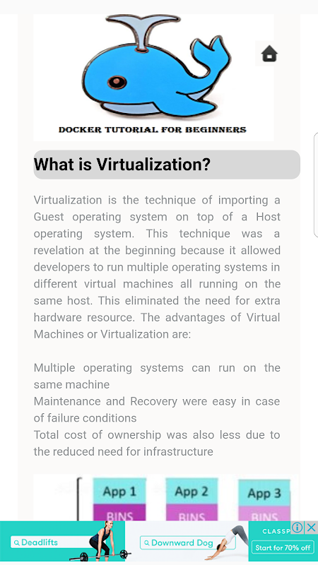 -> Docker Tutorial For Beginners Offline App come with complete comprehensive and responsive layout.