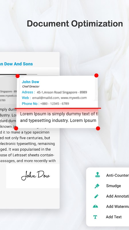 - Rotate/Enhance the visibility of your documents after scanning using built in effects