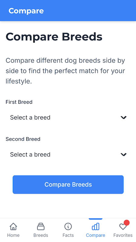 轻松并排比较两个狗狗品种,找到最适合你的生活方式或家庭的品种。