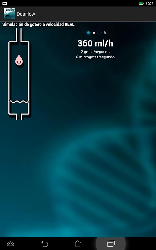Simulador a velocidad REAL de un gotero para ayudar a calcular visualmente la velocidad del suero o medicación a pasar en caso de no tener bomba o dosiflow para regular la velocidad.