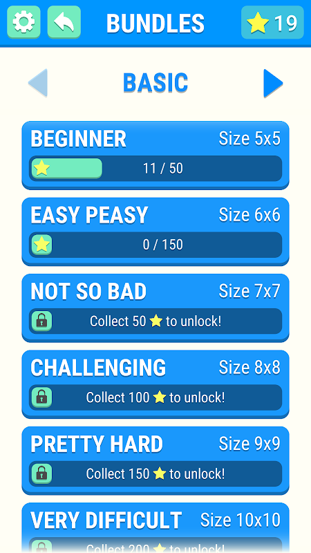 - 星星!以尽可能少的动作完成关卡,以获得金星!收集足够的金星以解锁更多关卡包!