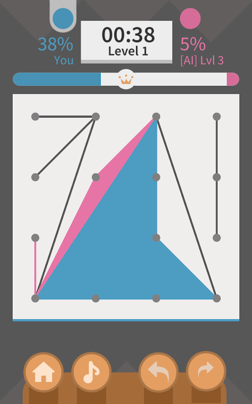 连接点并创建三角形!第一个用他的颜色覆盖超过50%的游戏区域的人获胜!