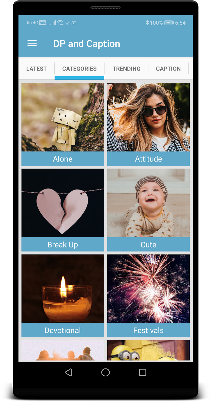 First app on play store to provide DP and Caption in a single app. DP and Caption app contains awesome DP and Caption to copy, download and share with friends on any social media profile like WhatsApp