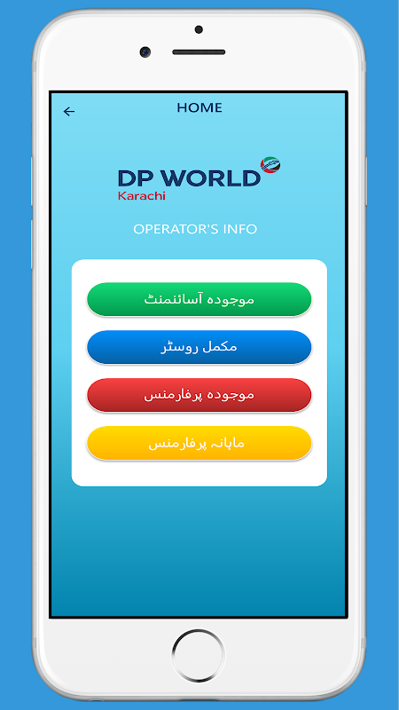 DP World Karachi Operators' Mobile App provides Current Equipment Assignment, Daily Equipment Roster, Daily Performance and Monthly Performance of operators.