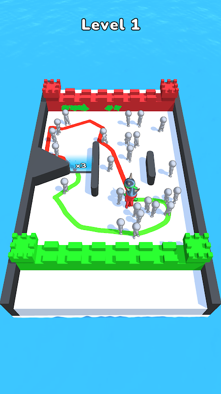 Move around and draw closed loops to recruit armies inside