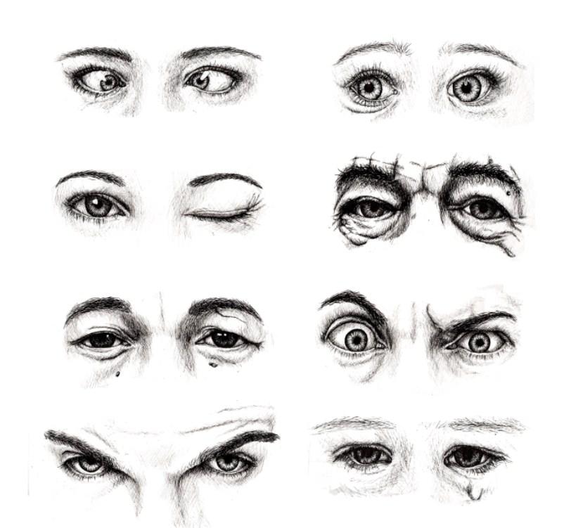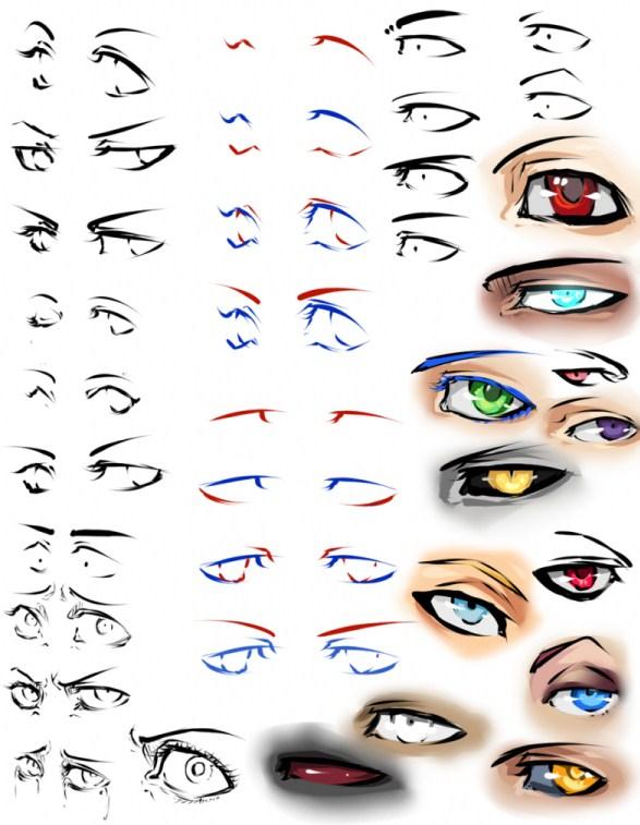好的绘图教程仍然可以帮助您加速学习过程。你需要的是关于如何绘制的分步说明。看看瞳孔(中心的黑色区域),光线照射时该区域缩小。瞳孔周围的区域是虹膜,这是给我们我们眼睛颜色的区域。正如你可以看到它不仅仅是褐色的斑点,而且它构成了高光和阴影,这就是我们将要关注的。