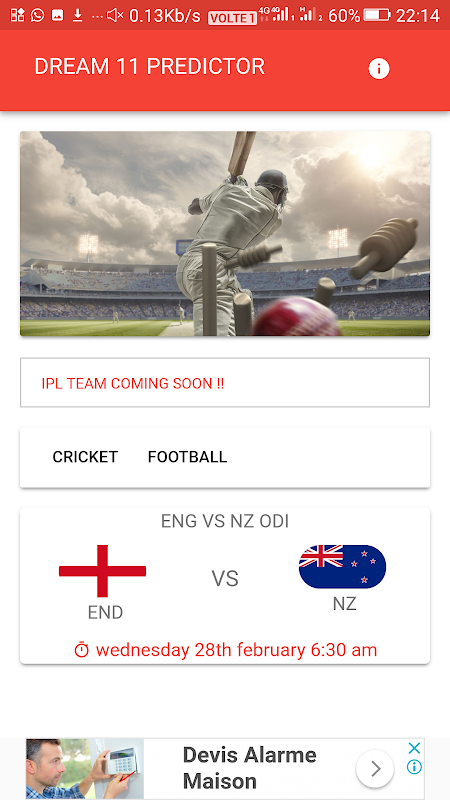 so we are here with our latest app The dream app that lets you predict the most probable dream team. Get daily updates on team news of cricket and football.