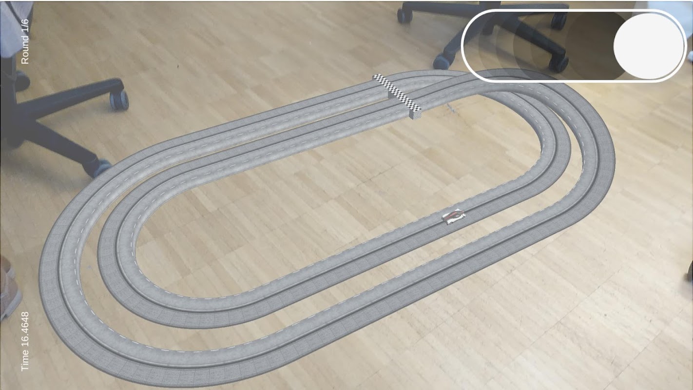 A core feature is the track builder where the user can create custom tracks by looking around with the AR camera in his living room.