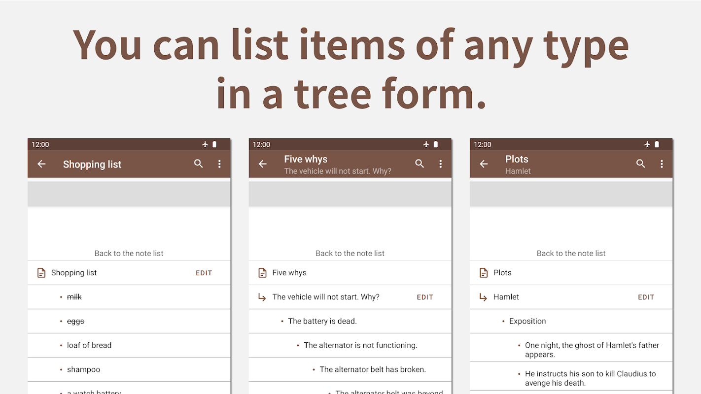 您可以在应用程序中创建任意数量的笔记(树),并可以将任何想法放入其中,无论流派或类别如何。