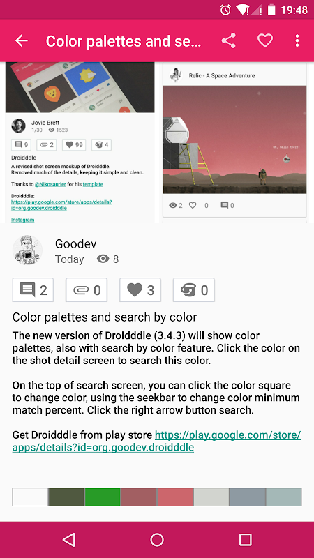 Droidddle (追波) 是一个 Dribbble 安卓客户端。