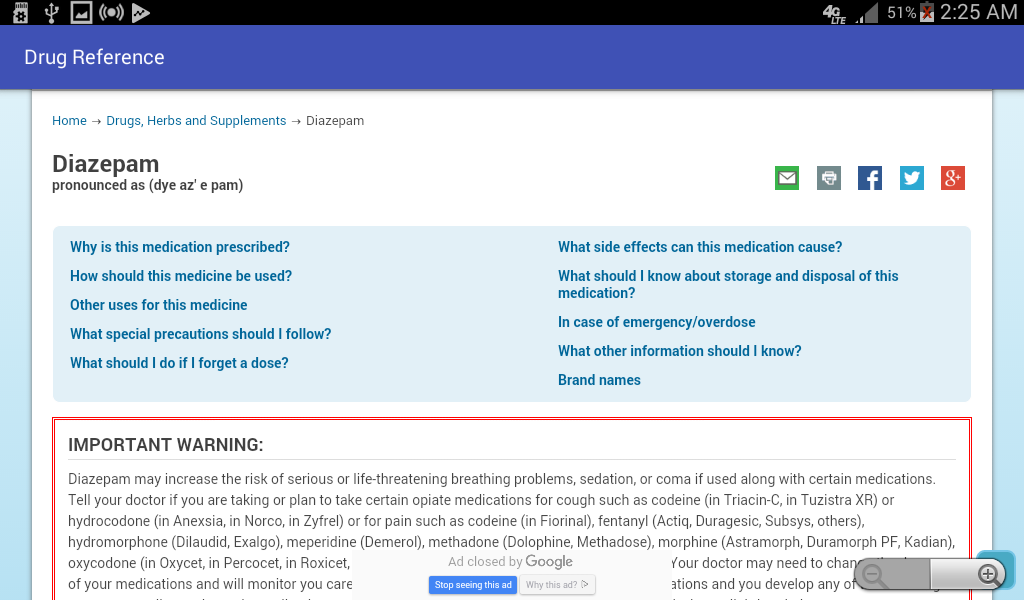 This App was designed to offer a free index into the catalogs of medicine that we take everyday. Looking help narrow your search to specific, targeted drug information. Information is available for both consumers and healthcare professionals on prescriptions and over the counter medicines available thoughout the world and the US.