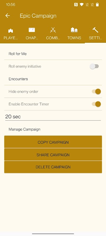 Quickly create a Campaign, add a town complete with shops; citizens; and everything you need in both to answer your players questions. Create Encounters and modify them then enter combat and add them and your players in an imitative order that's all taken care of by the app with your input. Store all of your notes in this app as well, have everything to be prepared for your next tabletop experience!