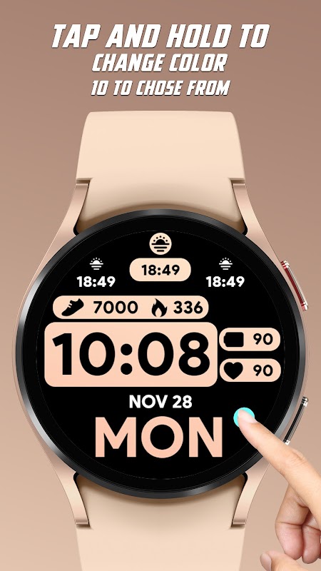 我们的彩色手表表盘让您的手表看起来独特且信息丰富,它还配备了令人惊叹的自定义选项,如自定义复杂功能、3D 渐变和自适应颜色。