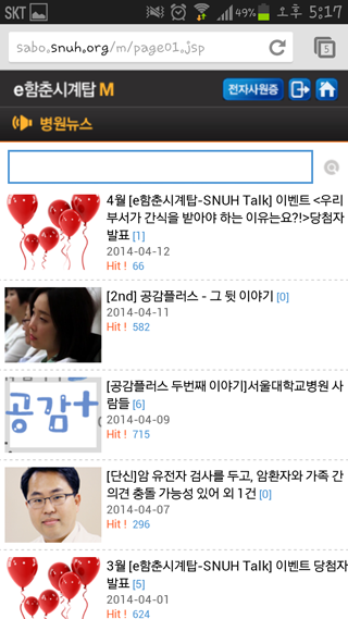 SNUH 전자사보는 각종 병원소식과 유용한 정보을 직원분들에게 빠르게 전달하는 온라인 메신저입니다.