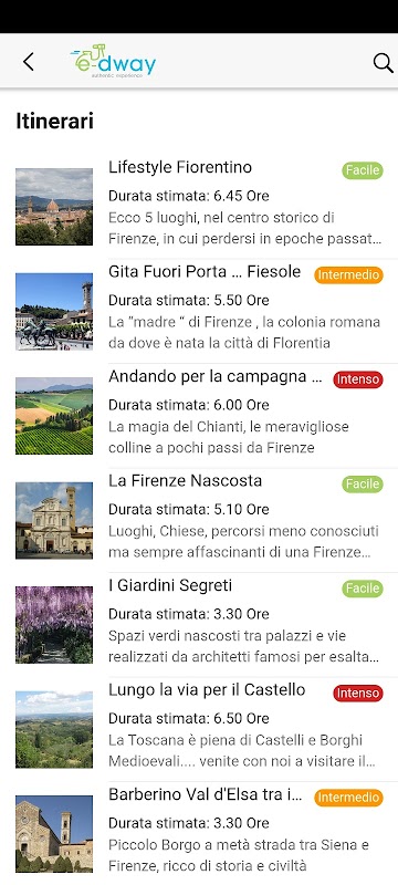E-Dway Experience ti permetterà di scoprire i Territori in completa autonomia immergendoti nei luoghi grazie a tutte le informazioni dettagliate presenti per ogni Punto d'interesse.