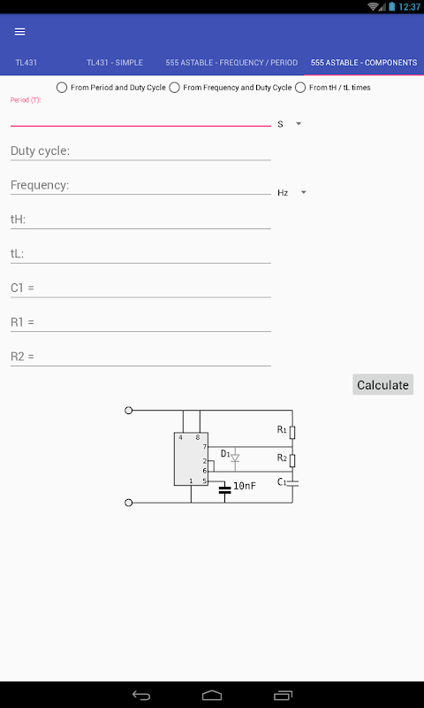 ✔ 555 (NE555 and clones) AStable, Monostable (frequency, period, components values)