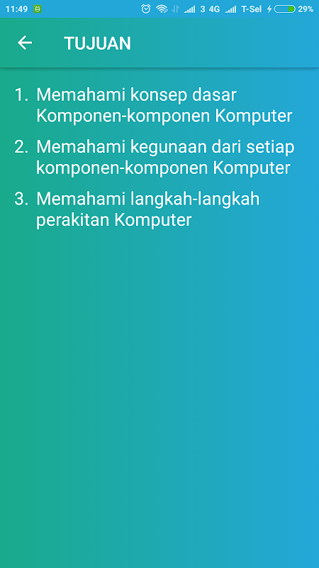 E-LEARN TKJ APP adalah sarana media pembelajaran Perakitan Komputer yang ditujukan kepada siswa SMK Teknik Komputer dan Jaringan (TKJ). Di dalam media pembelajaran ini termuat berbagai materi, gambar, dan video serta quiz yang membantu mengevaluasi pembelajaran.