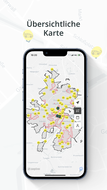 我们的电动滑板车分布在整个奥尔登堡。您可以使用我们的 EWE Go e-sharing 应用程序查找您附近的下一辆滑板车,保留 15 分钟,然后预订