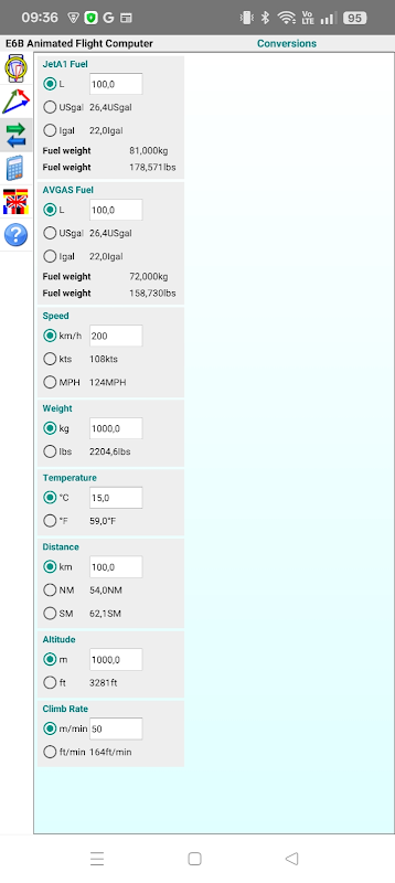 - 提供燃油、速度、爬升率、高度、距离、质量和温度的单位换算。