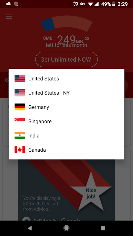 Eagle VPN free version shows ads and limited bandwidth. Upgrade to premium to enjoy unlimited and ad-free VPN!