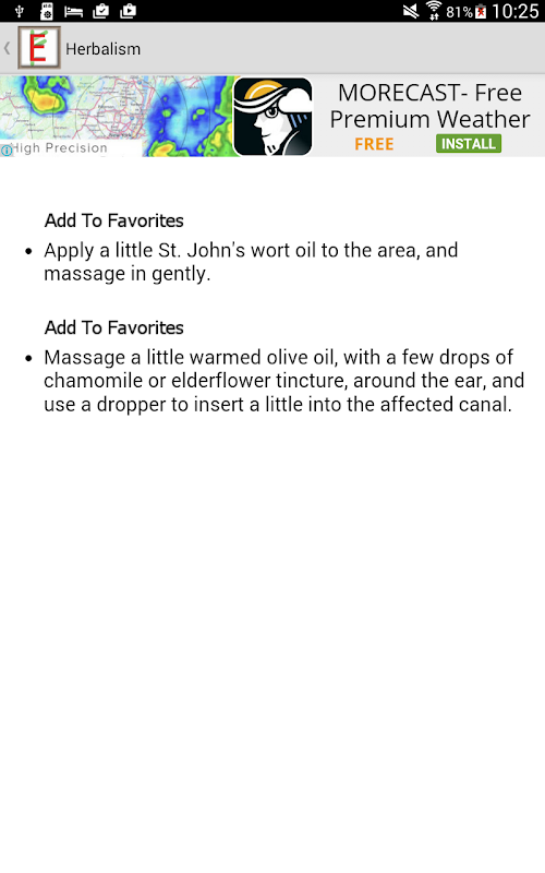 With this app, we have compiled ancient earache remedies. We give you only the successful ones. Here is the table of contents: