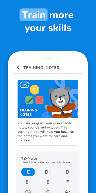 您可以编写自己的特定音符,声音和八度音程。此培训模式将帮助您专注于您想要学习和练习的笔记。