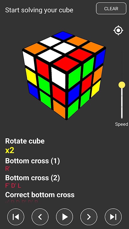 该应用以可在 3D 模型上呈现的步骤列表的形式呈现解法。您可以根据自己的喜好调整动画速度。