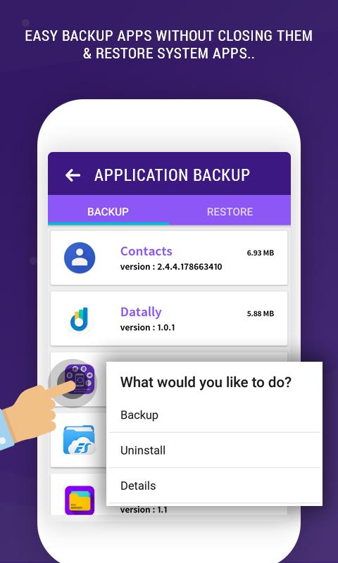Want to keep record of your mobile's important data? Use this app and take easy and quick backup of all your mobile data. You can later easily restore all the backups anytime.