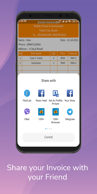 *可以轻松地与您的朋友发送您的发票。