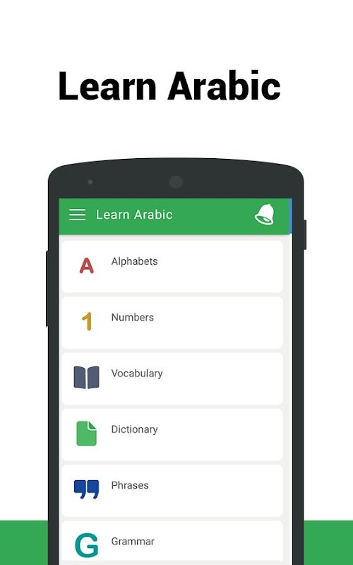 The basic fundamentals of Arabic language can easily be learn by using this app. Tap on the word and listen how to pronounce the correct Arabic word and help you start a conversation and understand what they are saying. As every language we start with the basic and this app provide Alphabets in Arabic, Numbers in Arabic as well as Vocabulary. Easy Learn Arabic app also contain dictionary and is a complete package for non-Arabic people to start speaking Arabic just in few months.