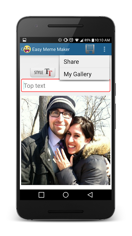 Customize your font style and size, save your meme creations and share with the world or just your friends quickly and easily with built-in sharing menu.