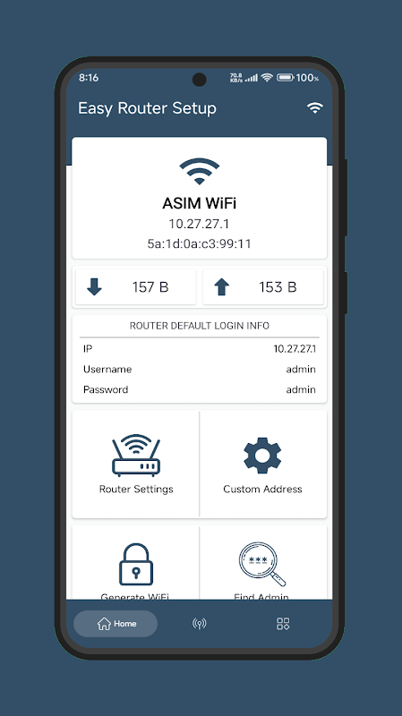 1. 将手机连接至 WiFi,然后打开简易路由器设置应用程序。您将在应用程序中看到您的 IP 地址。