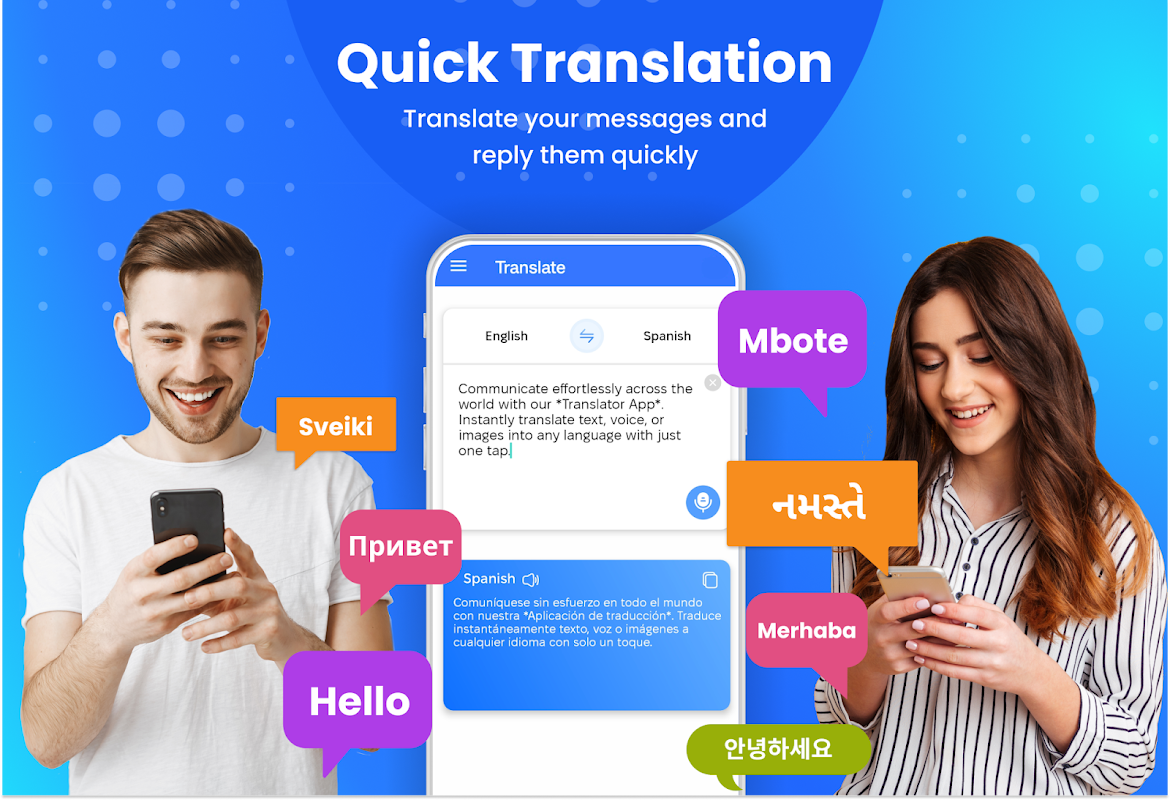 Easy Translate 显示接听电话,使您能够在来电发生时识别来电,以便您可以在来电后立即翻译语音和文本!这使您能够在通话后只需轻按几下即可快速有效地翻译您的消息。
