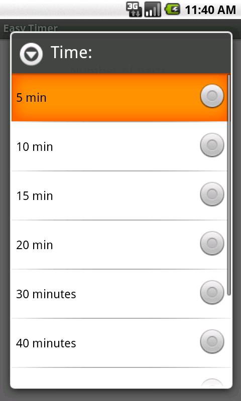 The timer has the function of separating time period for given number of intervals. It displays time until the end of the interval and the time frame to complete. In the timer, you can choose from a list of the time periods, or set time period manually (by minutes).