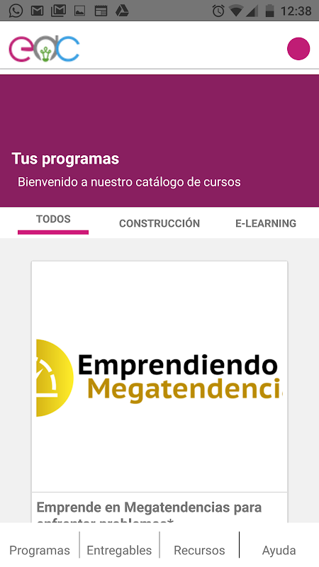 EDC Digital es una aplicación desarrollada por Distrito Emprendedor diseñada con una estructura tipo e-learning con materiales de aprendizaje y desarrollo de entregables que permite a los usuarios desarrollar y construir una idea de negocio desde cero.