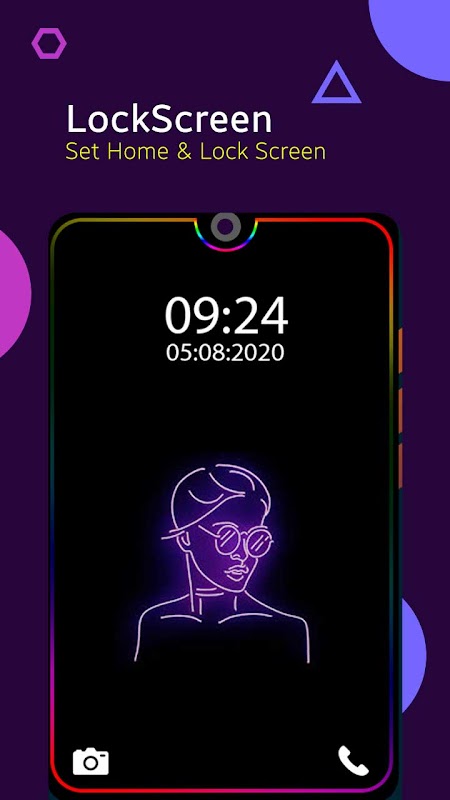 Wallpaper borders place light around all screen with a variety of 🌤edge lighting wallpaper clips.Show lighting effects around the lock screen. You can adjust brightness on display.