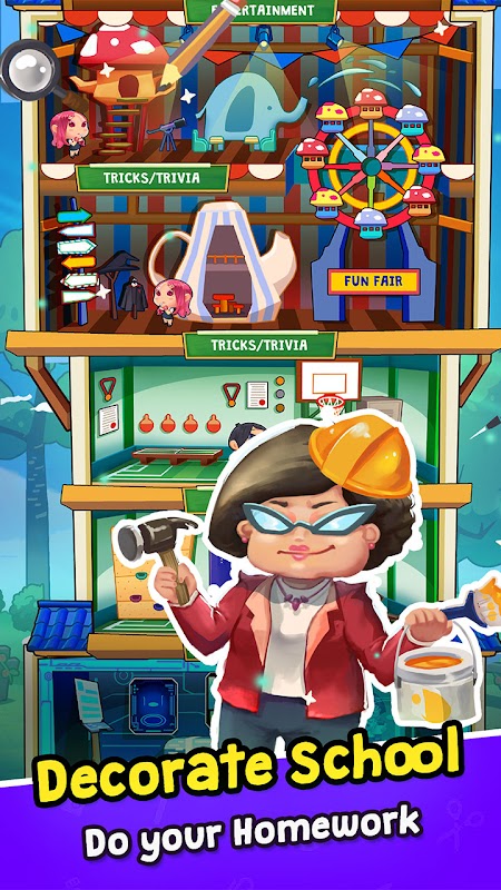 With knowledge, you can build your school and strive to be the best. There is a mix of adventure included where you can learn while traveling around the world. If you are ready, take up this challenge and compete with different players all around the world . Be the real EDUKING.