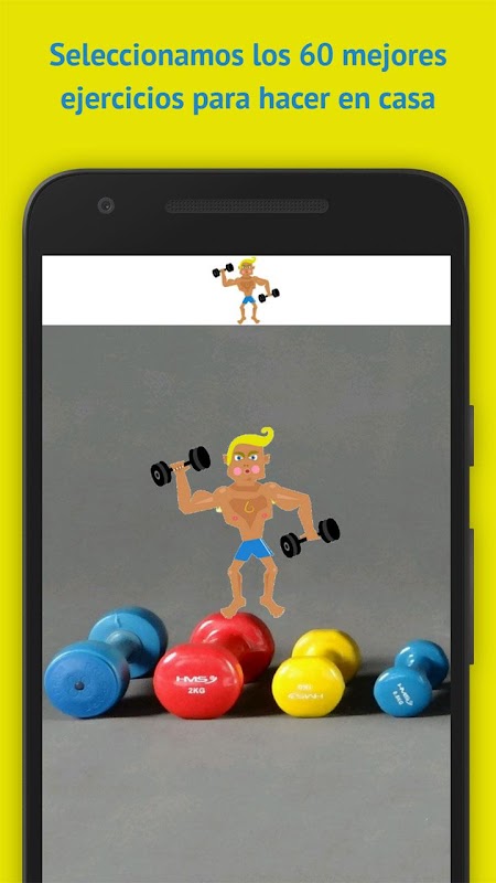 Para poder seguir las distintas tablas de ejercicios incluidas en la aplicación le recomendamos adquiera un juego de mancuernas de 4 ó 5 kilos para los hombres y de 3 ó 4 Kg para las mujeres dependiendo de la complexión, estado físico y edad de cada persona.