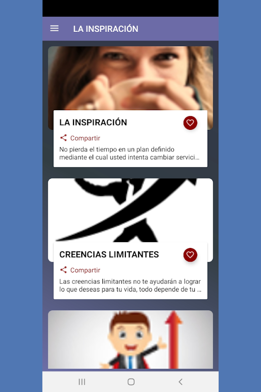 该应用程序向我们介绍了许多有关如何克服障碍以在生活的各个方面取得成功的问题,因为我们的思维非常有力,并且有了积极的肯定就可以实现目标。