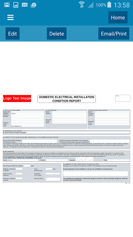 7) Electrical Installation Condition Report