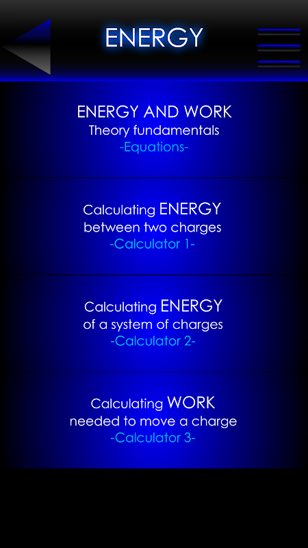 Useful app to solve those electrostatic problems that many of us find when studying physic courses at school/college. With this app you will be able to know the electrostatic force between charges or among multiple of them, the electric field created by one (or more) point charge, the electrostatic potential, the energy between charges or the work needed to move a point charge. And all that for two or more point charges!