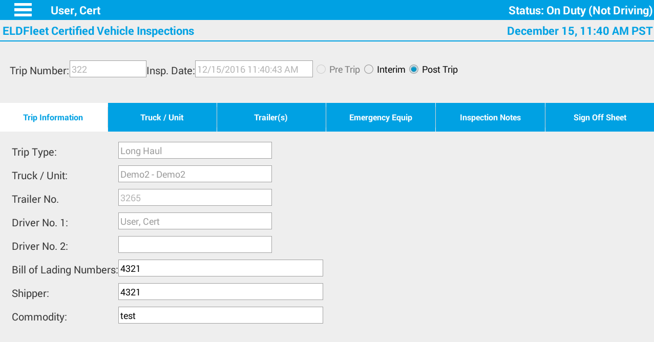 ELD Fleet™ supports electronic HOS logging and easy creation/sending of Driver Vehicle Inspection Reports (DVIR). The App notifies drivers when they are about to exceed their HOS conveniently greys out for distraction-free driving.