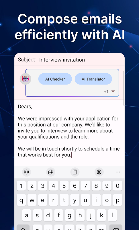 让我们使用这款人工智能驱动的电子邮件应用程序升级您的收件箱!我们致力于彻底改变您的沟通方式。人工智能助手可以简化任务并节省时间,让您完成更多工作。以下是我们的顶级人工智能功能,可让您立即征服您的收件箱: