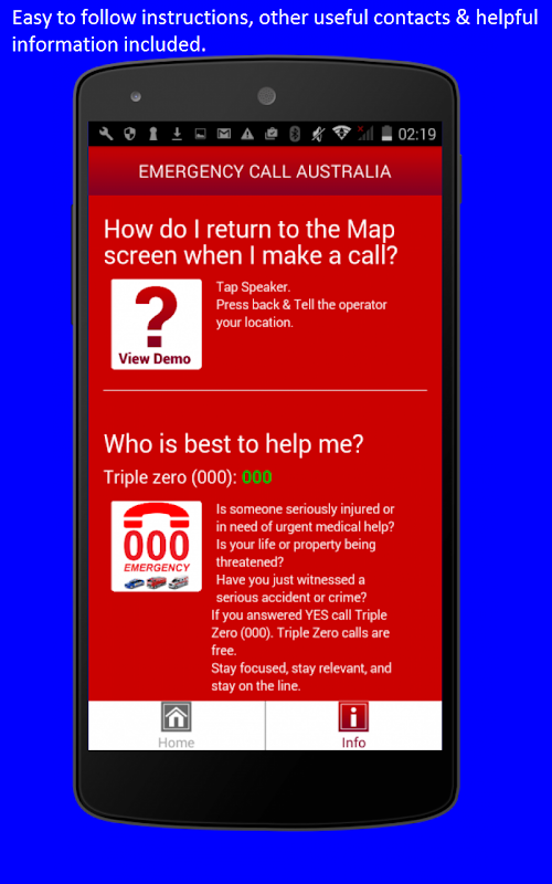 EMERGENCY CALL AUSTRALIA is the Triple-Zero (000) & Emergency Contacts Smart Phone App.