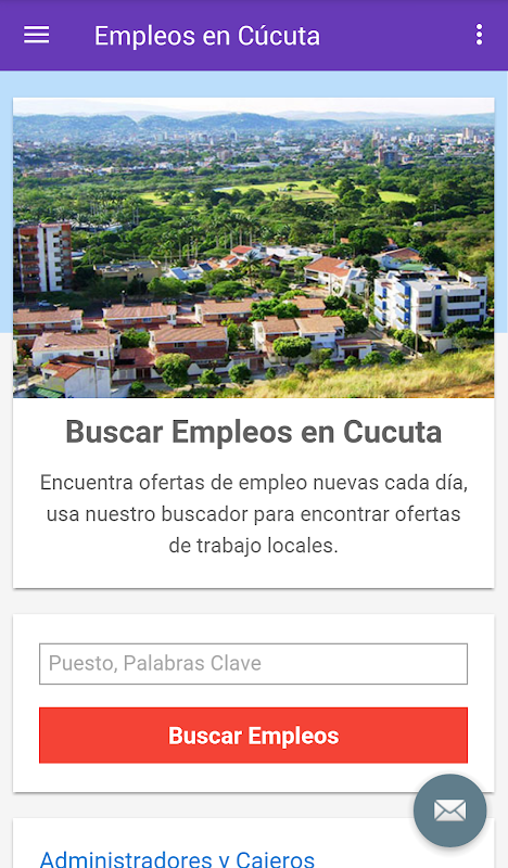 Ya sea que usted está buscando un empleo en línea, independiente, de abogado, de ingeniero, de administración, o de médico, trabajo sin experiencia, trabajo medio tiempo, etc., lo podrás encontrar fácilmente con la app empleos en Cúcuta