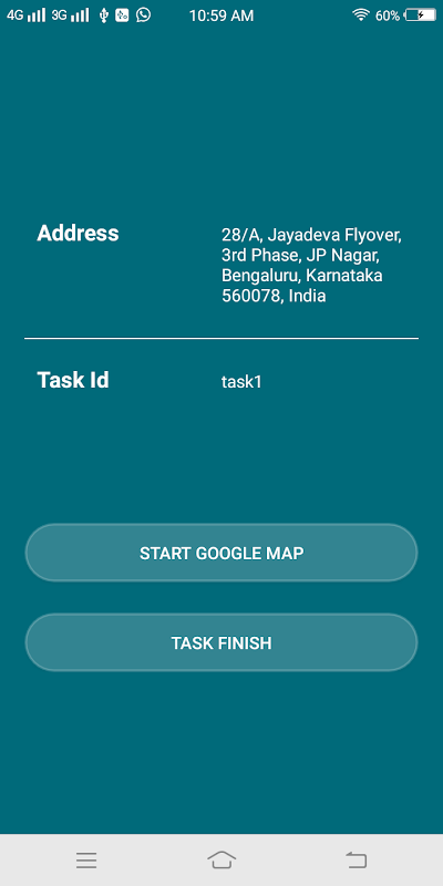 After login with the app employee will see his/her total task details and before starting any task employee should open the google map on