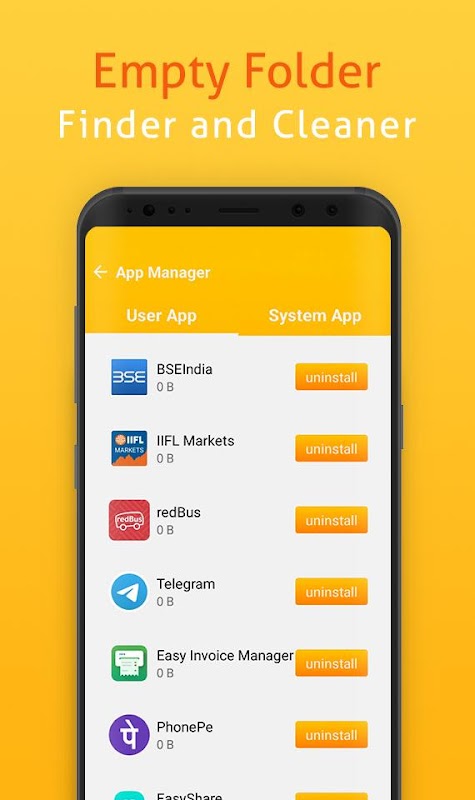 这个应用程序可以轻松地从设备中删除不必要的文件。应用程序将允许用户从您的设备中删除所有空文件夹和子文件夹。只需单击一下,即可从设备中删除所有不需要的、未使用的、不需要的文件。